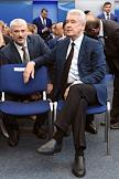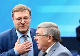 Ежегодная политическая конференция партии "Единая Россия" в формате совместного заседания Высшего и Генерального советов "Единой России". Председатель комитета Совета федерации по международным делам Константин Косачев (слева) и глава комитета Совета Федерации по социальной политике Валерий Рязанский (справа) перед началом конференции.