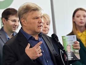 Briefing of candidates for the Moscow City Duma from the Yabloko party. Deputy Chairman of the Yabloko Party Nikolai Rybakov during a briefing.