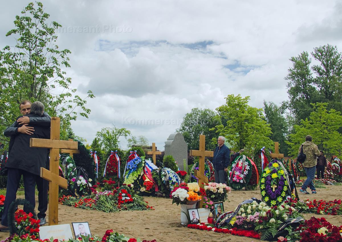 Похороны моряков-подводников, погибших на глубоководном аппарате Военно-морского флота России 1 июля в Баренцевом море, на Серафимовском кладбище.