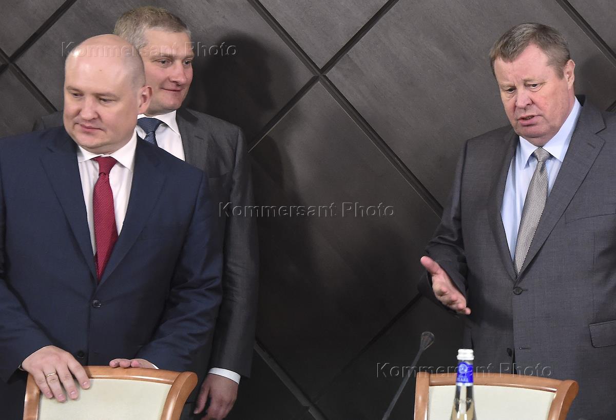 Церемония представления временно исполняющего обязанности губернатора Севастополя Михаила Развожаева депутатам, общественным деятелям и представителям власти города. Полномочный представитель президента России в Южном федеральном округе Владимир Устинов после церемонии.