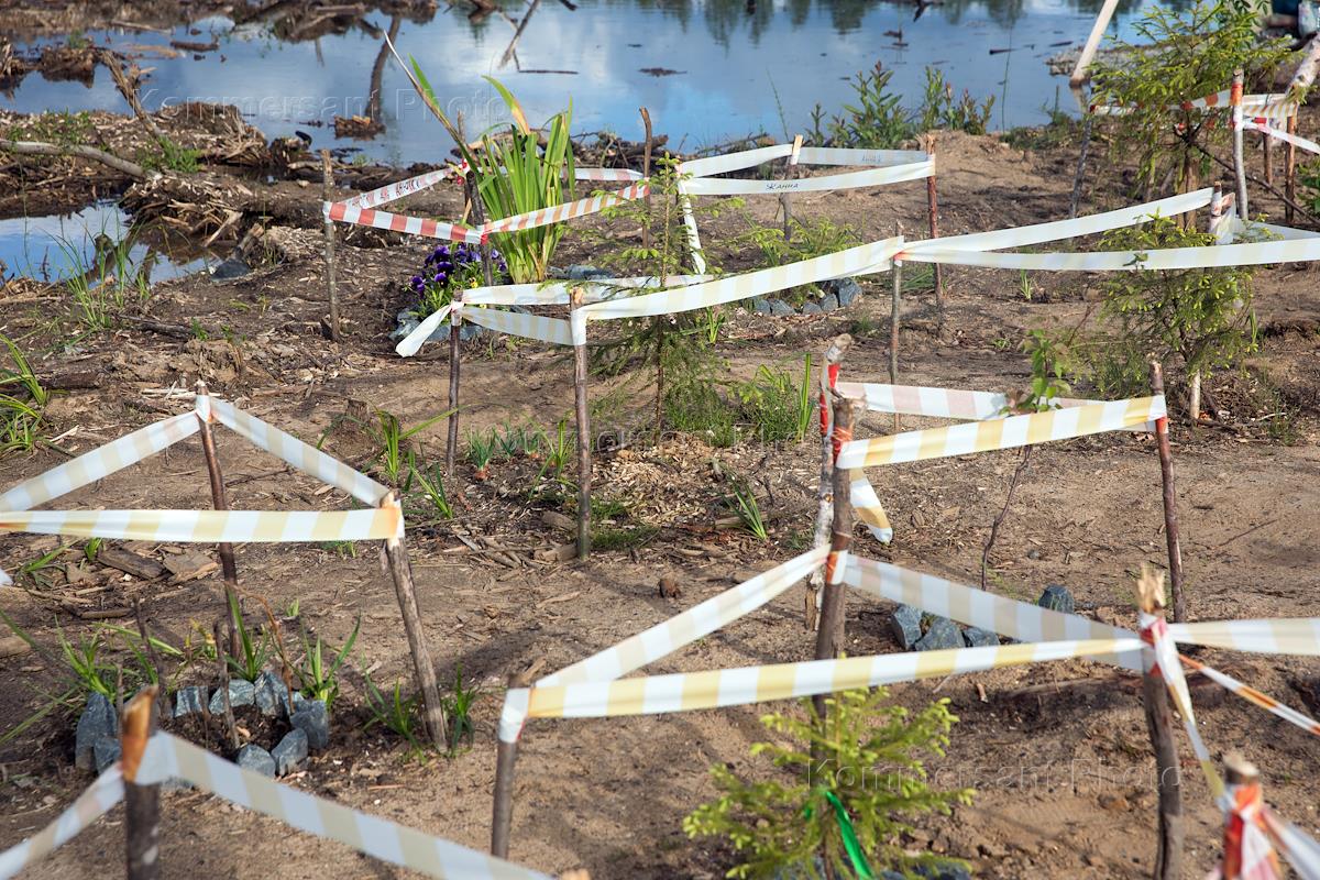Протестное движение против строительства мусорного полигона "Шиес". Экоактивисты посадили на полигоне деревья взамен вырубленных. На некоторых подписаны имена тех, кто их сажал.
