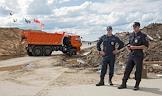 Мусорный полигон "Шиес". Сотрудники ЧОП "Гарант безопасности", нанятые ООО "Технопарк", на строительной площадке мусорного полигона.