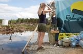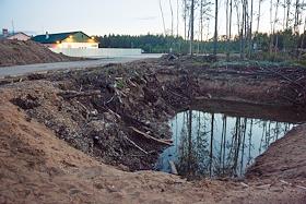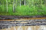 Жанровая фотография. Протестное движение против строительства мусорного полигона "Шиес". Яма с водой после недели жаркой погоды в болотистой местности возле железнодорожной станции Шиес.