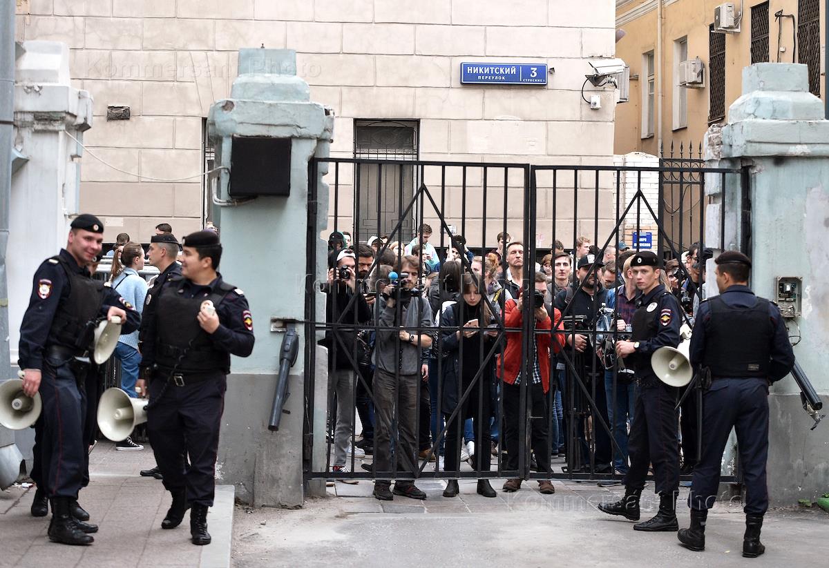 Акция в поддержку независимых кандидатов в депутаты Московской городской думы у здания Московской городской избирательной комиссии (Мосгоризбирком).