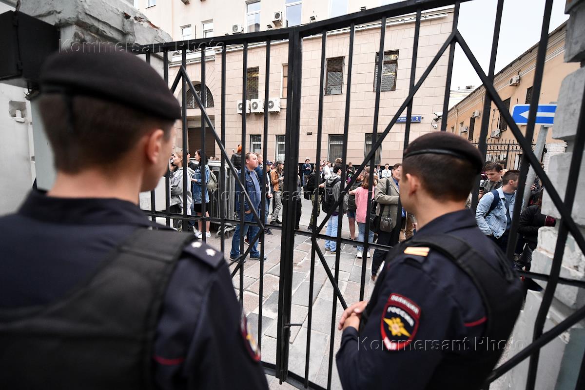 Акция в поддержку независимых кандидатов в депутаты Московской городской думы у здания Московской городской избирательной комиссии (Мосгоризбирком). Сотрудники полиции во время акции.
