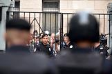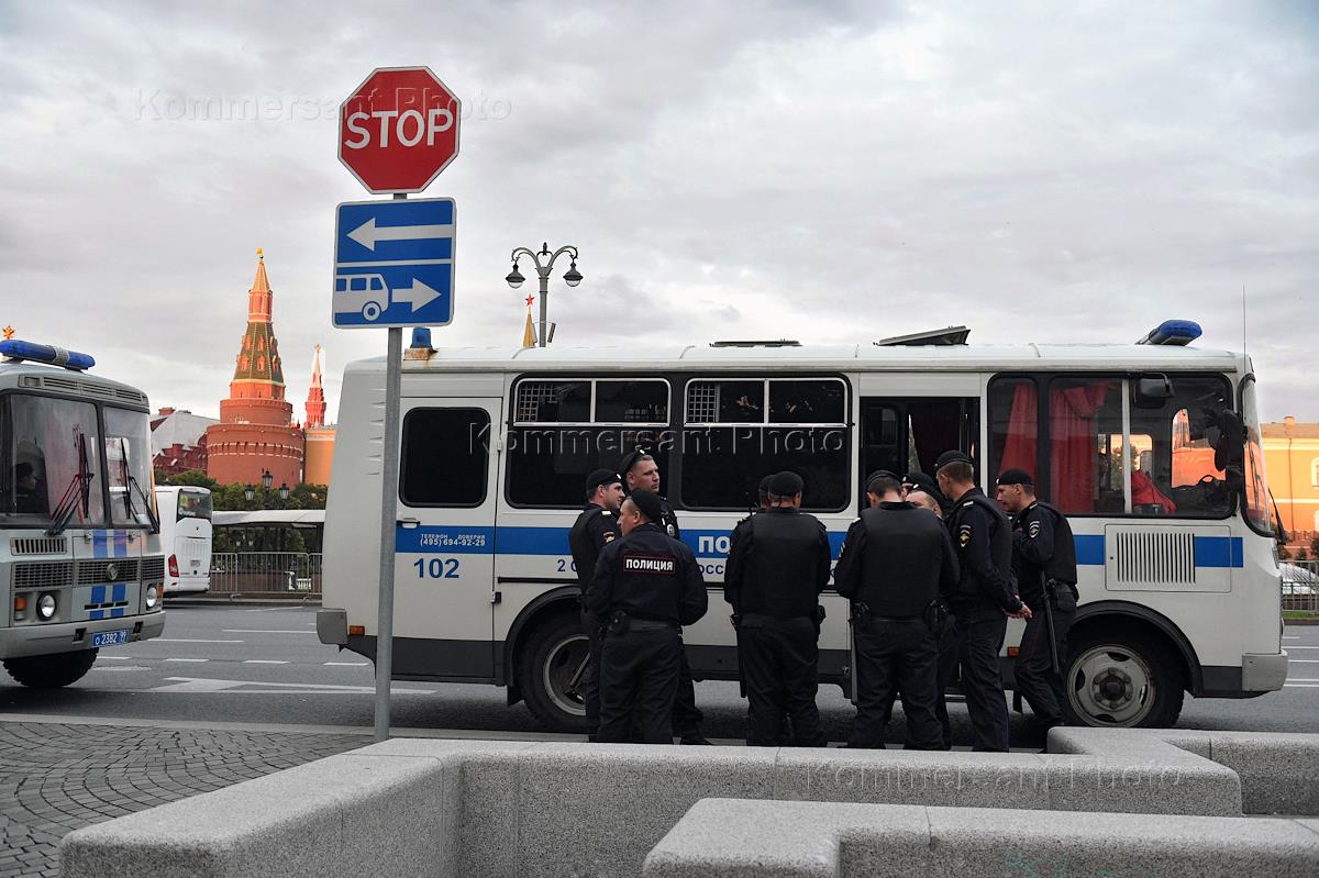 Акция в поддержку независимых кандидатов в депутаты Московской городской думы у здания Московской городской избирательной комиссии (Мосгоризбирком). Сотрудники полиции во время акции.
