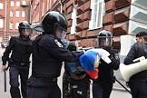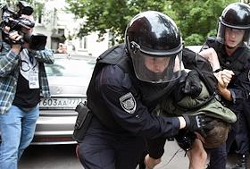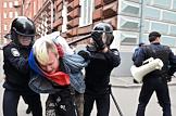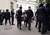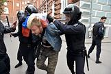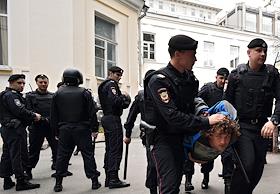 Акция в поддержку независимых кандидатов в депутаты Московской городской думы у здания Московской городской избирательной комиссии (Мосгоризбирком). Сотрудники полиции во время задержания учатсников акции.