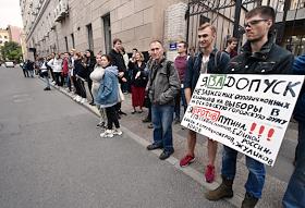 Акция в поддержку независимых кандидатов в депутаты Московской городской думы у здания Московской городской избирательной комиссии (Мосгоризбирком).