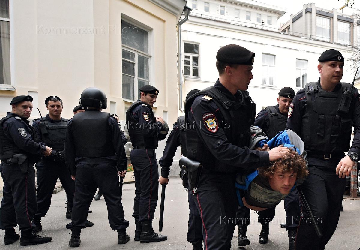 The rally in support of independent candidates for deputies of the Moscow City Duma outside the building of the Moscow City Election Commission. Participants during the rally. Police officers detaining protesters.