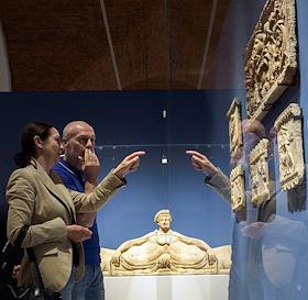Посетители на открытие выставки «Мечта об Италии. Коллекция маркиза Кампаны», организованная совместно c Лувром в Манеже Малого Эрмитажа.