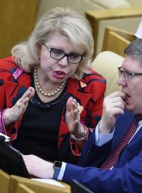Пленарное заседание Государственной думы (ГД) России. Уполномоченный по правам человека в России Татьяна Москалькова (слева) перед началом заседания.