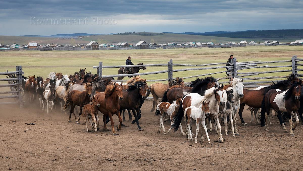 Жанровая фотография. Возрождение коневодства энтузиастами-конезаводчиками России. Село Ульдурга. Лошади забайкальской породы.
