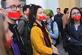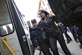 ЛГБТ-активистка Елена Григорьева (в центре) во время задержания ее сотрудниками правоохранительных органов во время несогласованной акции в центре города.