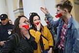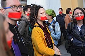 Участники несогласованной акция в защиту ЛГБТ движения в центре города.