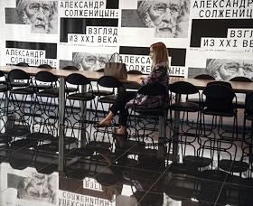 Посещние президентом России Владимиром Путиным Дома русского зарубежья имени Александра Солженицына. Слева направо: вдова писателя, президент Русского общественного фонда Александра Солженицына Наталья Солженицына, мэр Москвы Сергей Собянин, полномочный представитель Президента России в Центральном федеральном округе Игорь Щеголев и президент России Владимир Путин во время осмотра экспозиций Музея русского зарубежья, посвященных истории русской эмиграции и культурному наследию соотечественников за рубежом.