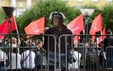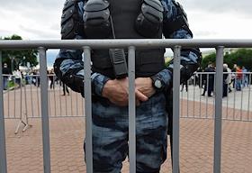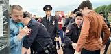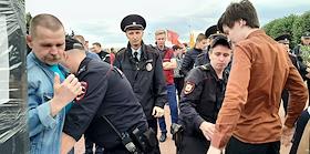 Митинг против произвола на выборах в Санкт-Петербурге на площади Ленина. Сотрудники полиции во время досмотра участников митинга.
