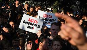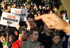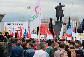 Митинг против произвола на выборах в Санкт-Петербурге на площади Ленина.