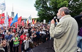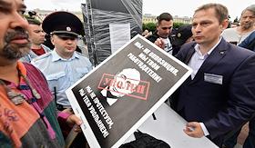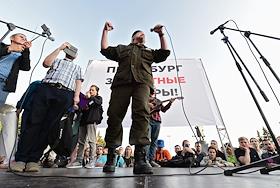 Митинг против произвола на выборах в Санкт-Петербурге на площади Ленина. Депутат Законодательного собрания (ЗакС) Санкт-Петербурга Борис Вишневский во время митинга.