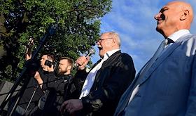 Митинг против произвола на выборах в Санкт-Петербурге на площади Ленина. Первый заместитель председателя комитета Государственной думы России по культуре, режиссер Владимир Бортко (второй справа) во время митинга.