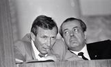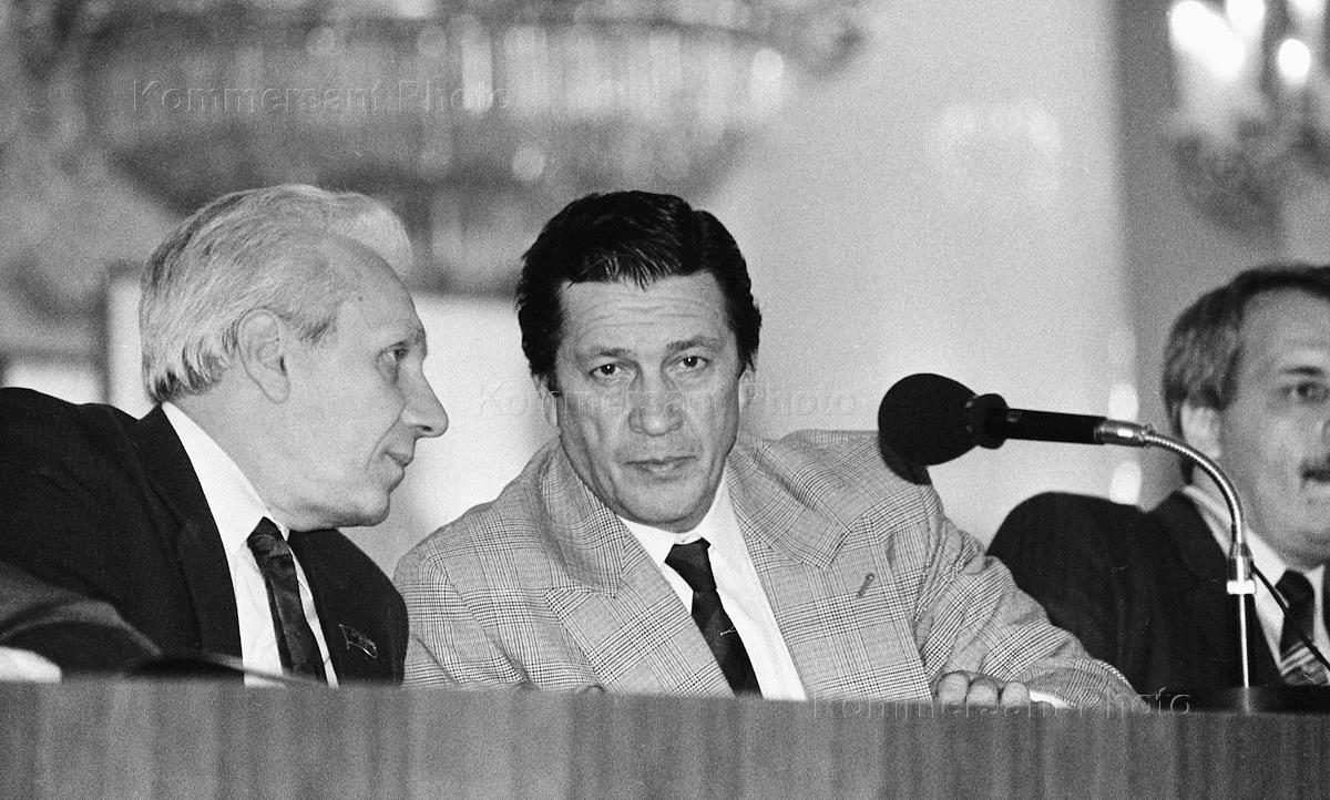 Заседание партии "Экономической свободы". Глава администрации Шаховского района Московской области Николай Травкин (слева) и президент Российского союза промышленников и предпринимателей (РСПП) Аркадий Вольский (справа) во время заседания в Колонном зале Дома Союзов.