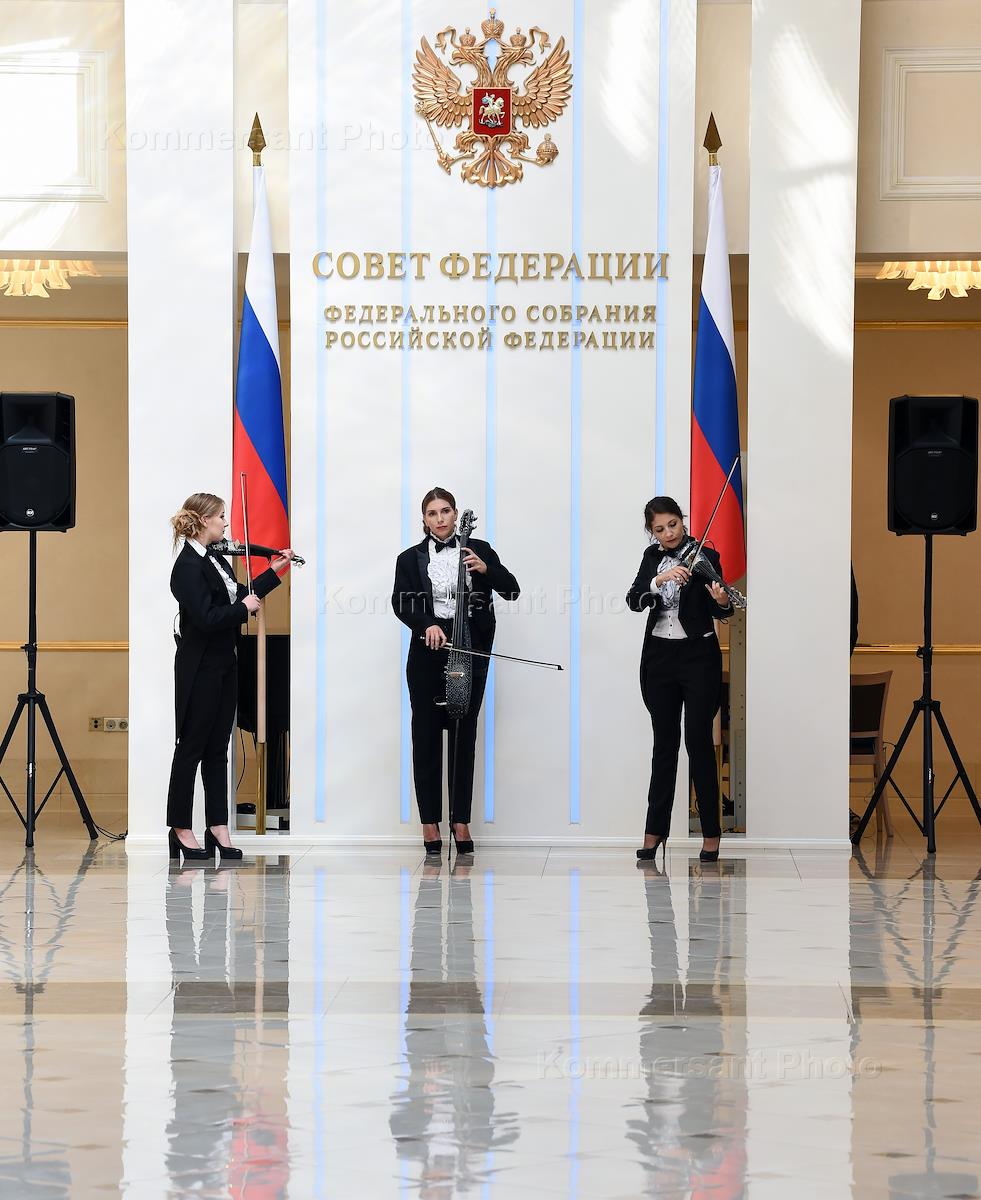 The last plenary session of the spring session of the Federation Council of Russia. Musicians in the lobby of the Federation Council of Russia before the meeting.