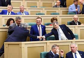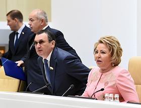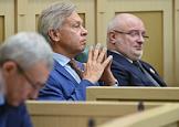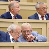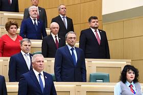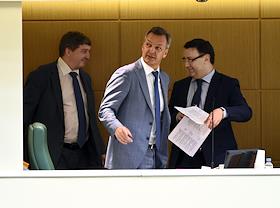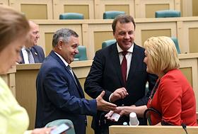 The last plenary session of the spring session of the Federation Council of Russia. Right to left: Liliya Gumerova, representative in the Federation Council of Russia from the executive authority of the Republic of Bashkortostan; Artur Muravyov, plenipotentiary representative of the Russian President in the Federation Council of Russia, and Alexander Rakitin, representative in the Russian Federation from the executive authority of the Republic of Karelia.