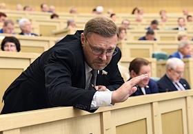 The last plenary session of the spring session of the Federation Council of Russia. Konstantin Kosachev, Chairman of the Russian Federation Council Committee for Foreign Affairs during the meeting.