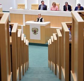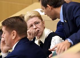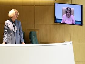 The last plenary session of the spring session of the Federation Council of Russia. Representative in the Federation Council of Russia from the executive authority of the Omsk region Elena Mizulina (center) during the meeting.