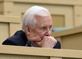 The last plenary session of the spring session of the Federation Council of Russia. Valery Ryazansky (left) Chairman of the Russian Federation Council Committee for Social Policy before the meeting.