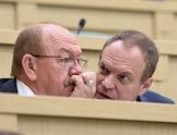 The last plenary session of the spring session of the Federation Council of Russia. Representative in the Federation Council of Russia from the legislative (representative) authority of the Astrakhan region Gennady Ordenov (left) and representative from the executive authority of the Astrakhan region Alexander Bashkin (right) during the meeting.