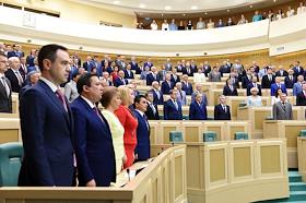 The last plenary session of the spring session of the Federation Council of Russia. Members of the Federation Council of Russia during the meeting.
