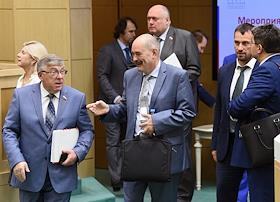 The last plenary session of the spring session of the Federation Council of Russia. Members of the Federation Council of Russia before the meeting.