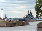 Генеральная репетиция военно-морского парада в честь Дня Военно-Морского Флота в акватории Кронштадтского рейда. Корабль-музей "Беспокойный" у причальной стенки во время генеральной репетиции.