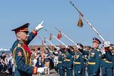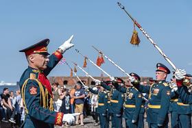 Генеральная репетиция военно-морского парада в честь Дня Военно-Морского Флота в акватории Кронштадтского рейда. Номер праздничной програмы на борту корабля-музея "Беспокойный".