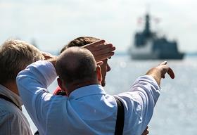 Генеральная репетиция военно-морского парада в честь Дня Военно-Морского Флота в акватории Кронштадтского рейда. Зрители во время генеральной репетиции.