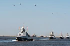 Генеральная репетиция военно-морского парада в честь Дня Военно-Морского Флота в акватории Кронштадтского рейда.