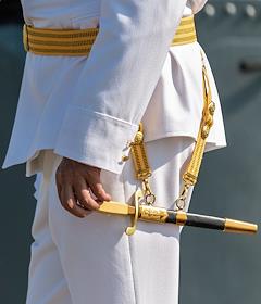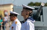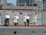 Генеральная репетиция военно-морского парада в честь Дня Военно-Морского Флота в акватории Кронштадтского рейда. Номер праздничной програмы на борту корабля-музея "Беспокойный".