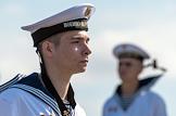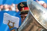 Генеральная репетиция военно-морского парада в честь Дня Военно-Морского Флота в акватории Кронштадтского рейда. Участники военного оркестра во время генеральной репетиции.