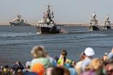 Генеральная репетиция военно-морского парада в честь Дня Военно-Морского Флота в акватории Кронштадтского рейда. Корабли динамического показа во время генеральной репетиции.