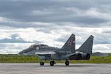 Аэродром Североморск-3. Самолет Су-25УТГ (Су-39) отдельного корабельного истребительного полка. Заруливание.