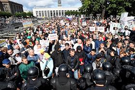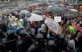 Unauthorized rally in support of independent candidates for elections to the Moscow City Duma in St Petersbourg.