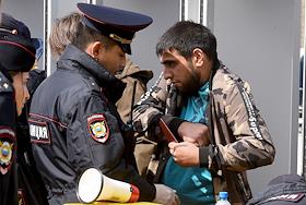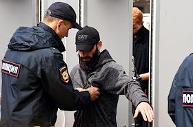 Unauthorized rally in support of independent candidates for elections to the Moscow City Duma in St Petersbourg. Police officers during a personal search of participants.