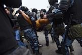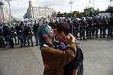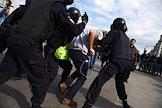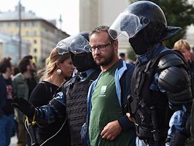 Несанкционированная акция в поддержку независимых кандидатов на выборы в Московскую городскую думу в центре Москвы. Сотрудники полиции во время задержания участников акции.