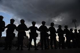 Несанкционированная акция в поддержку независимых кандидатов на выборы в Московскую городскую думу в центре Москвы. Сотрудники полиции во время акции.