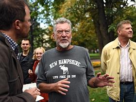 Несанкционированная акция в поддержку независимых кандидатов на выборы в Московскую городскую думу в центре Москвы. Музыкальный критик, искусствовед Аремий Троийкий (в центре) во время акции.