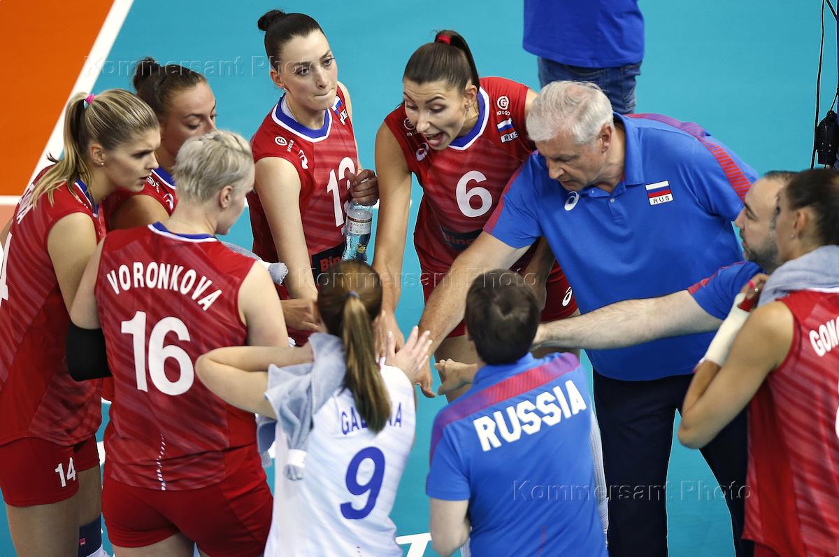 Олимпийский квалификационный турнир по волейболу. Матч между женскими сборными командами России и Республики Корея. Главный тренер сборной России Вадим Панков во время матча.