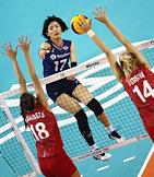 Олимпийский квалификационный турнир по волейболу. Матч между женскими сборными командами России и Республики Корея. Игрок сборной России Евгения Старцева (справа) во время матча.