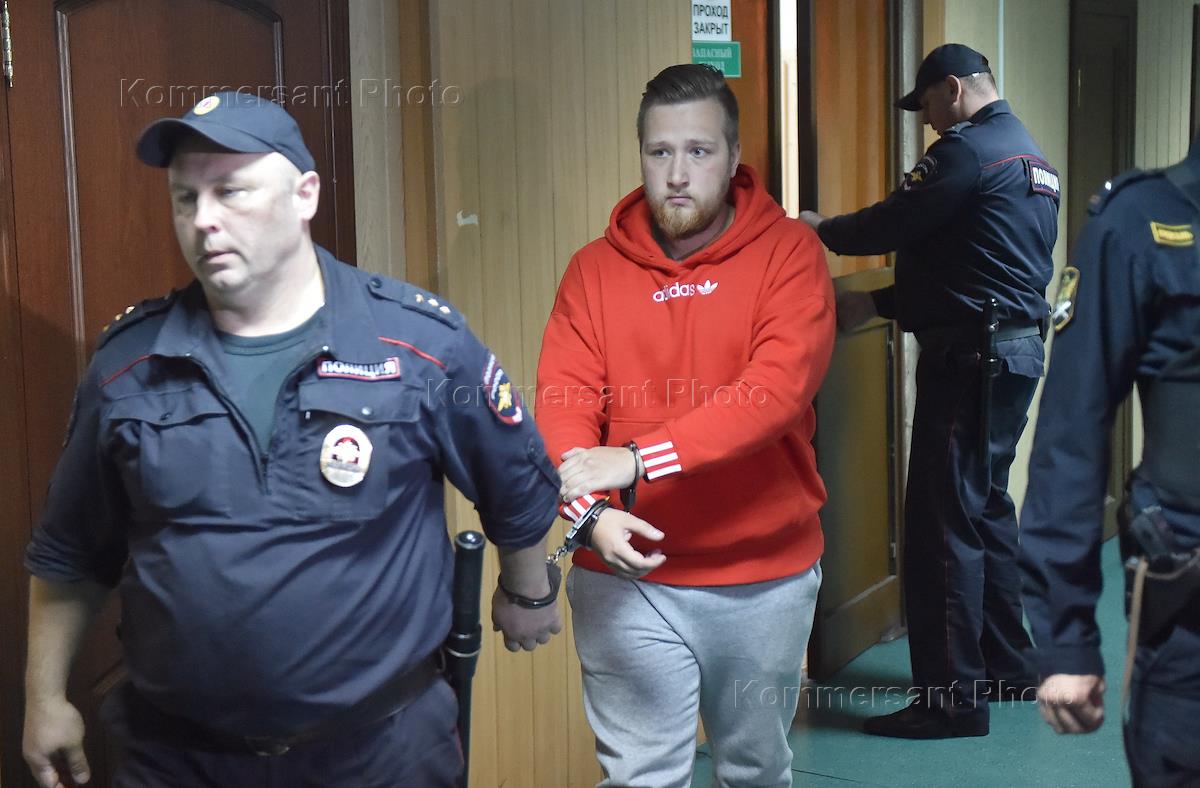 Обвиняемый по делу об участии в массовых беспорядках в Москве 27 июля 2019 года Владислав Барабанов (справа) во время заседания Пресненского районного суда.