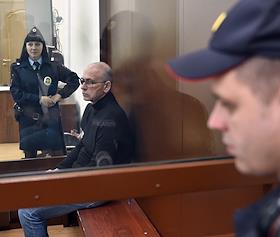Бывший министр финансов Московской области Алексей Кузнецов (справа), обвиняемый в хищении более 11 млрд рублей, во время заседания Басманного районного суда.
