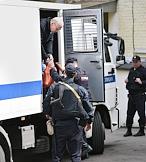 Бывший министр финансов Московской области Алексей Кузнецов (справа), обвиняемый в хищении более 11 млрд рублей, после заседания Басманного районного суда.